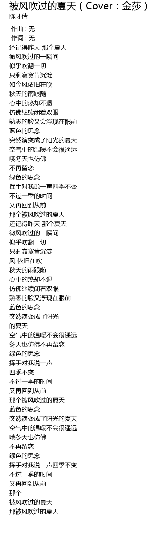 | [03:34.439] | bèi fēng chuī guò de xià tiān |
