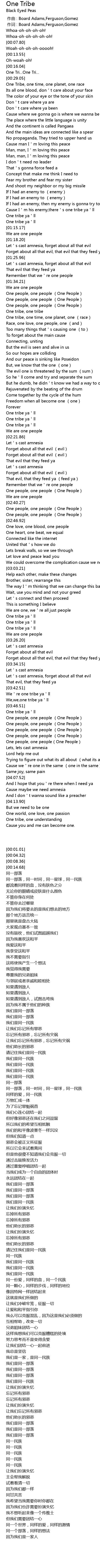 | [01:42.65] | One tribe, one tribe |