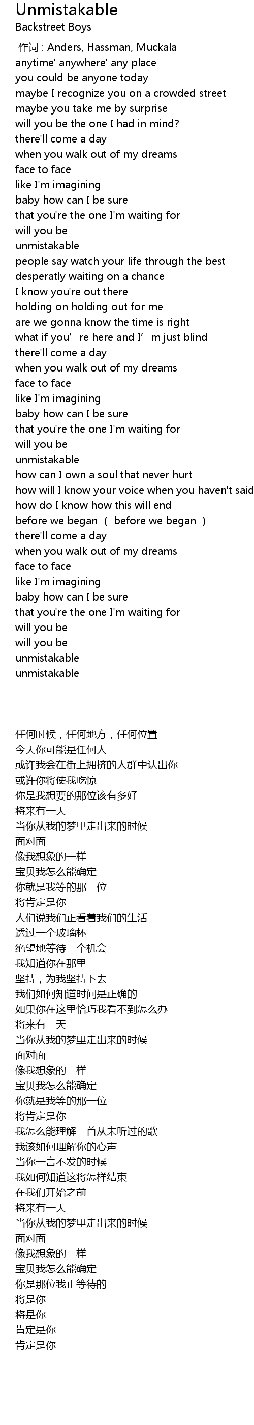 | [00:00.00] | 作词 : Anders, Hassman, Muckala |