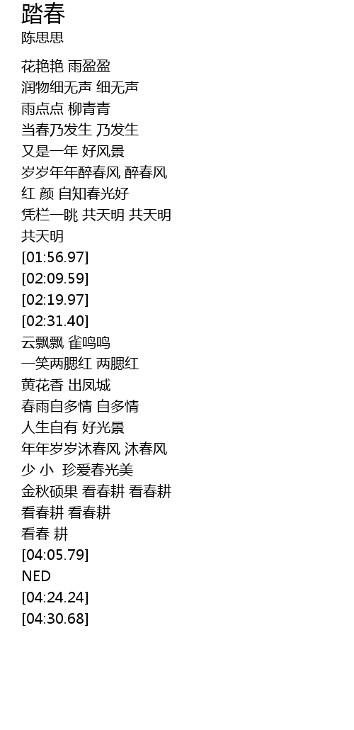 | [03:01.50] | chūn yǔ zì duō qíng zì duō qíng |