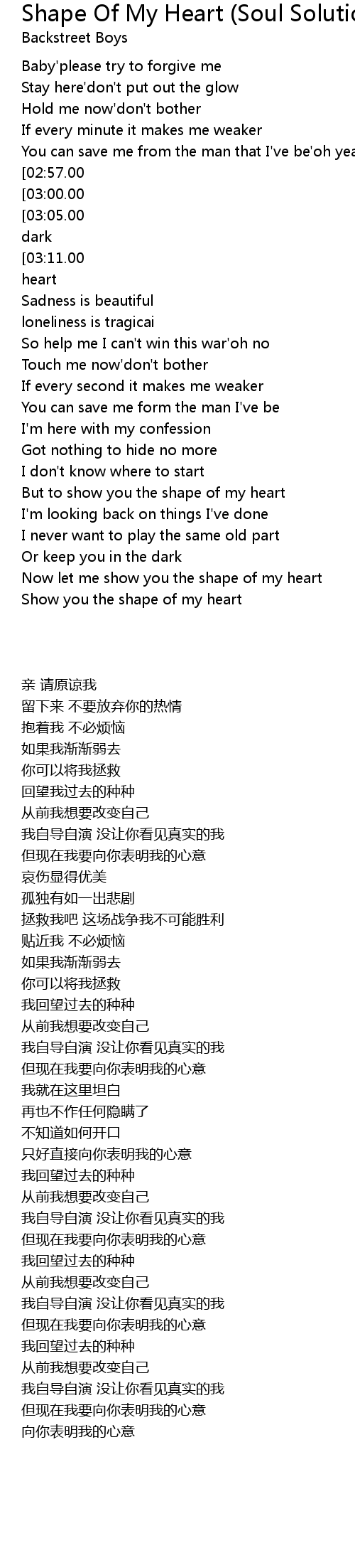 Shape Of My Heart (Soul Solution Radio Mix) Lyrics