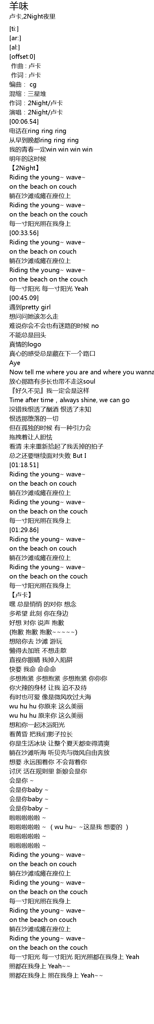 | [00:03.33] | zuò cí: 2Night lú kǎ |
