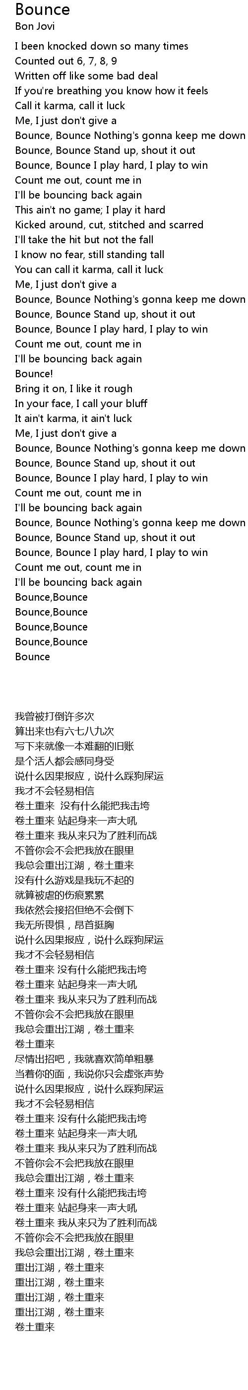 | [02:26.250] | Bounce, Bounce Nothing's gonna keep me down |