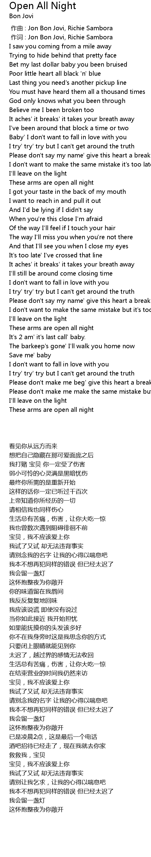 | [00:01.00] | zuò cí : Jon Bon Jovi, Richie Sambora |