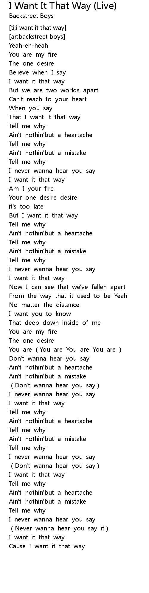 | [02:43.113] | I want it that way |