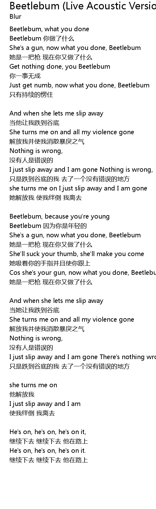 | Cos she' s your gun, now what you done, Beetlebum | |