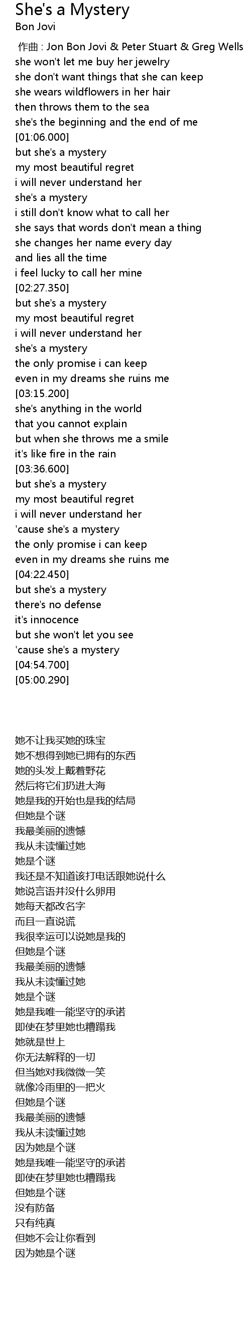 | [00:00.00] | 作曲 : Jon Bon Jovi & Peter Stuart & Greg Wells |