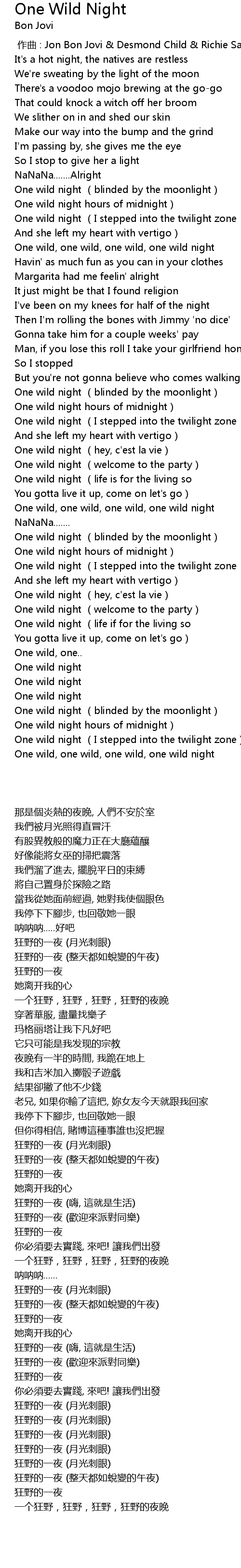 | [00:00.00] | 作曲 : Jon Bon Jovi & Desmond Child & Richie Sambora |