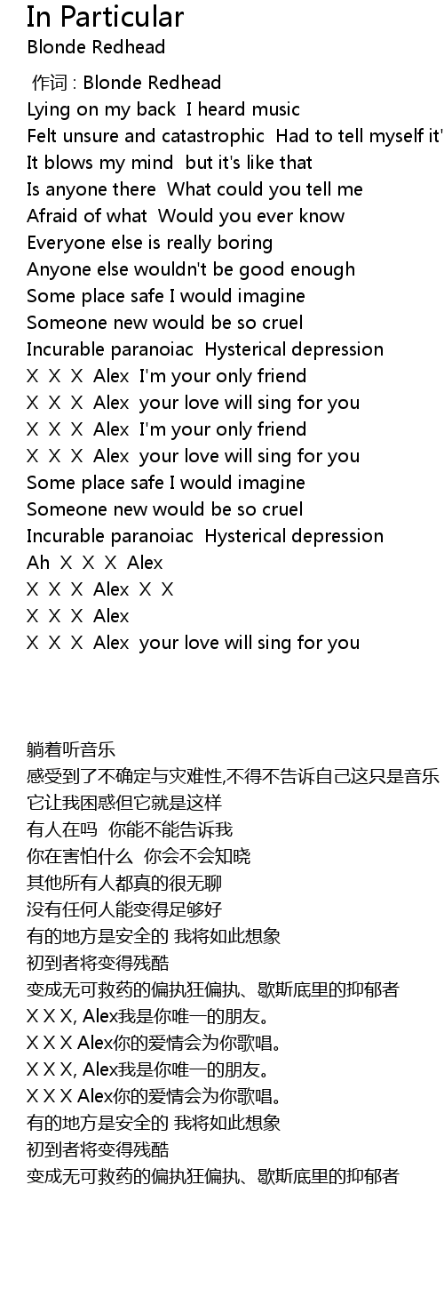 | [02:55.98] | X X X Alex I' m your only friend |