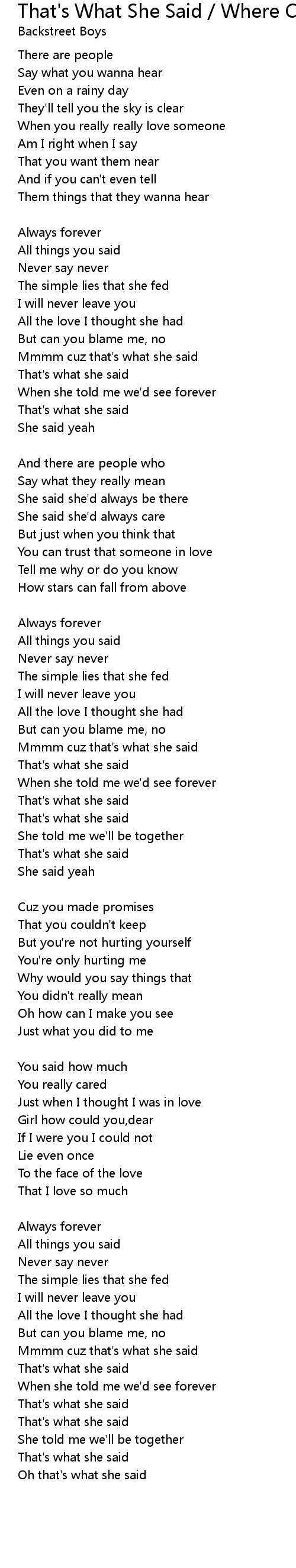 That's What She Said / Where Can Wo Go From Here? Lyrics