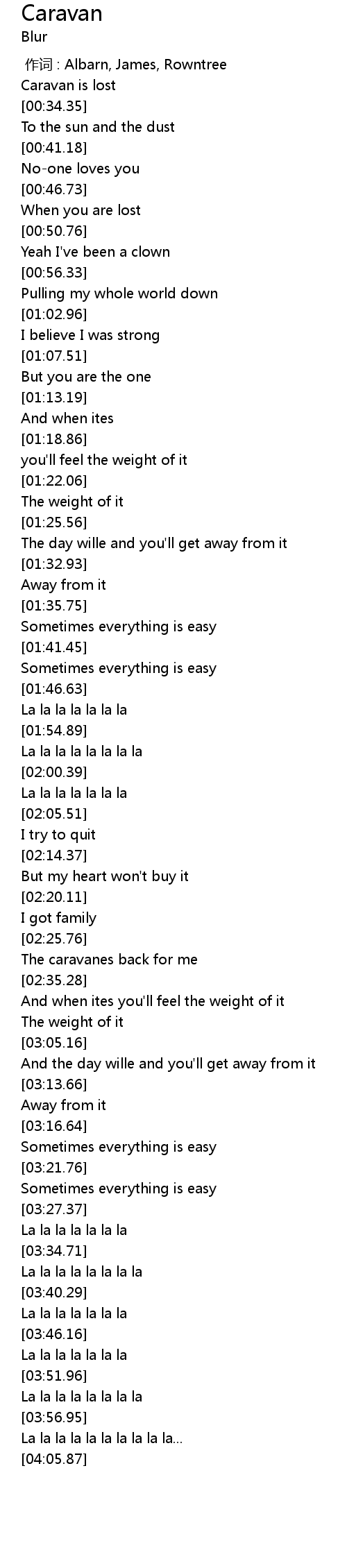 | [00:00.00] | zuò cí : Albarn, James, Rowntree |