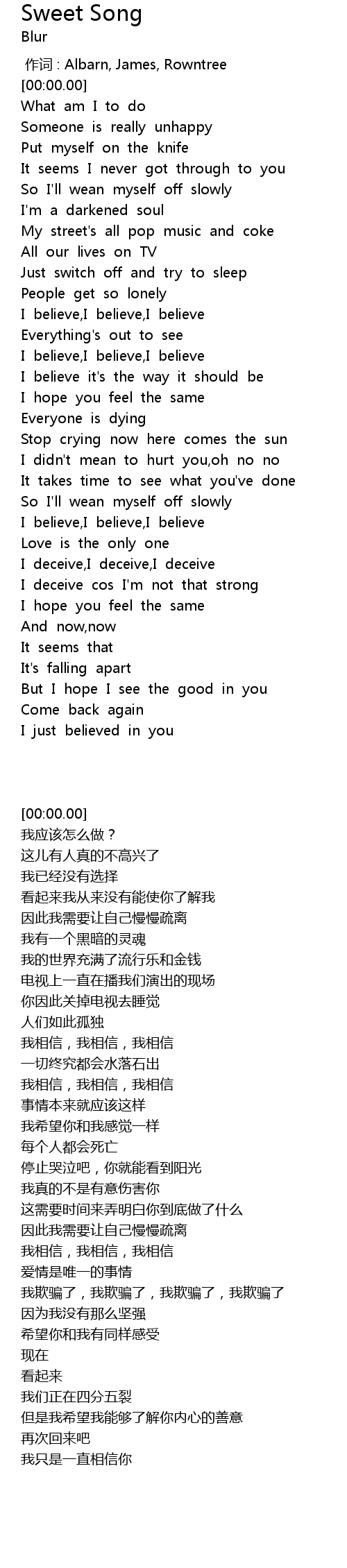 | [00:00.00] | zuò cí : Albarn, James, Rowntree |