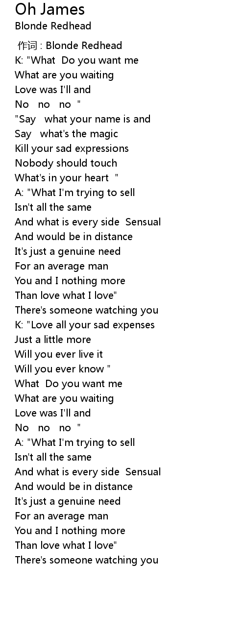| [00:00.00] | 作词 : Blonde Redhead |