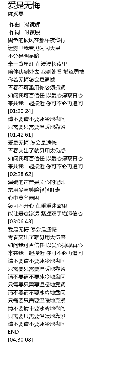 | [00:46.28] | 你若无悔怎会是遗憾 |