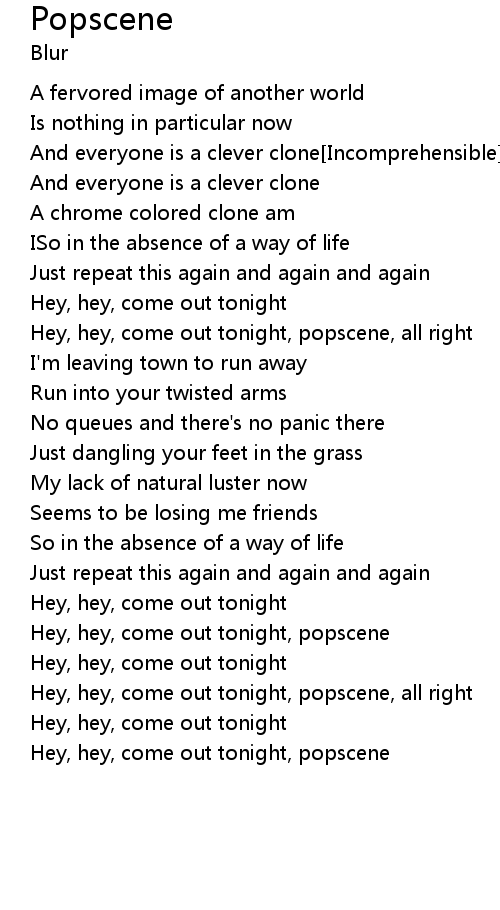 Hey, hey, come out tonight, popscene |