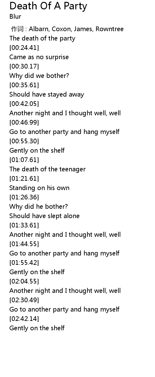 | [00:00.00] | zuò cí : Albarn, Coxon, James, Rowntree |