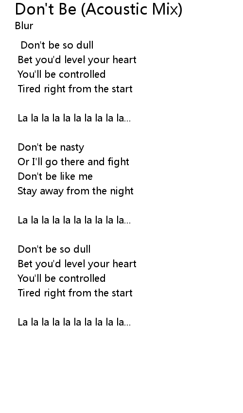 | Song | Don't Be (Acoustic Mix) |
