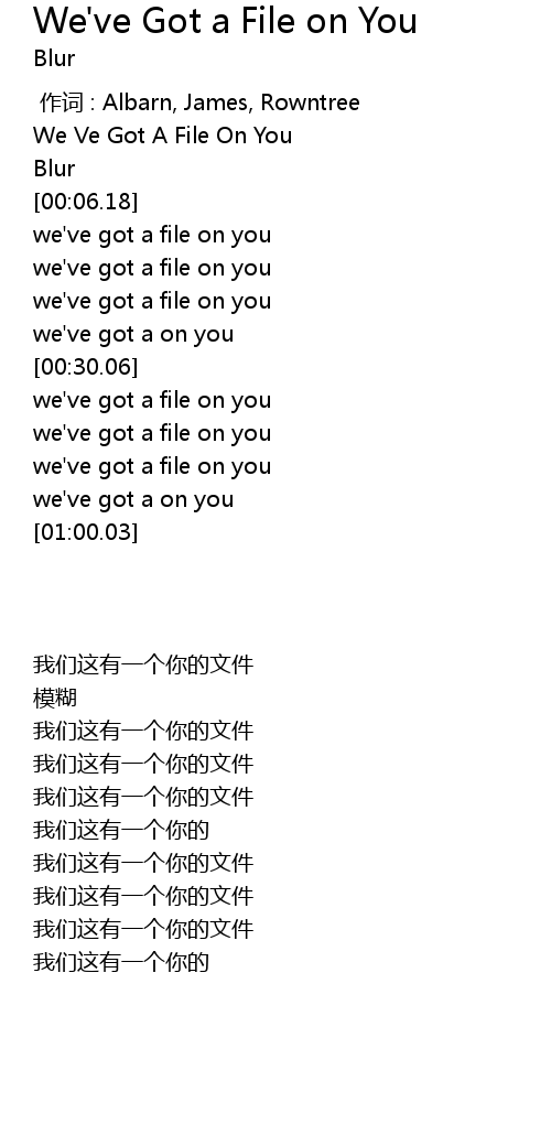 | [00:00.00] | zuò cí : Albarn, James, Rowntree |
