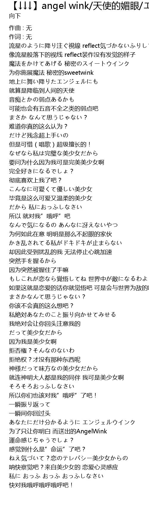 | Song | 【↓↓↓】angel wink/天使的媚眼/エンジェルウインク(Cover:茅野爱衣) |
