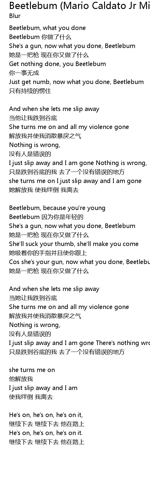 | Cos she' s your gun, now what you done, Beetlebum | |