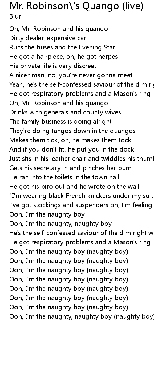 Mr. Robinson\'s Quango (live) Lyrics