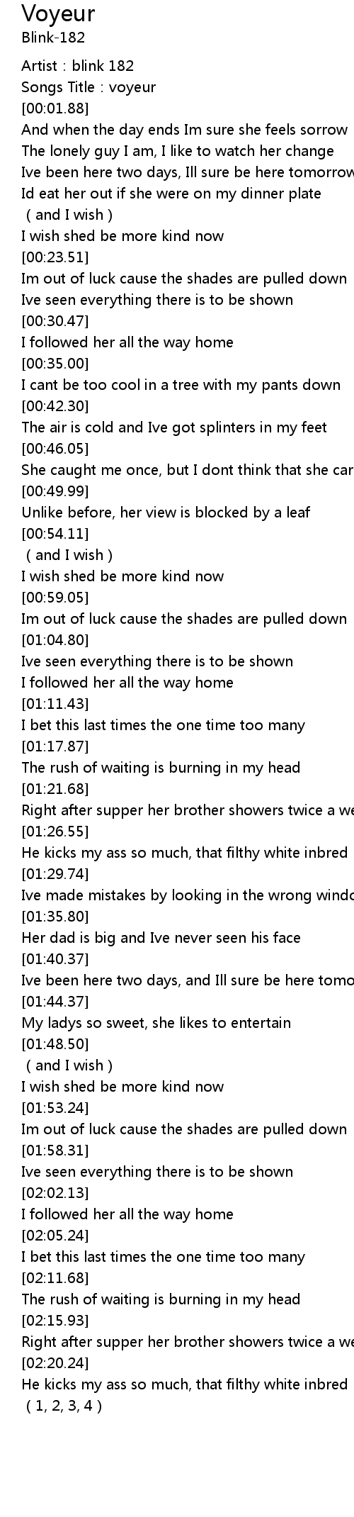 | [00:00.32] | Artist: blink 182 |