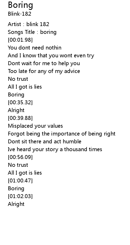 | [00:00.98] | Songs Title: boring |
