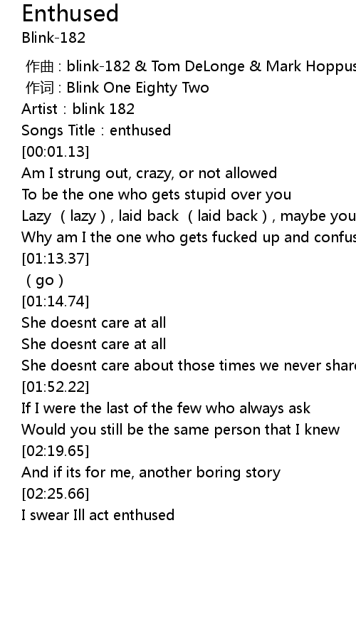 | [00:00.00] | 作曲 : blink-182 & Tom DeLonge & Mark Hoppus & Scott Raynor |