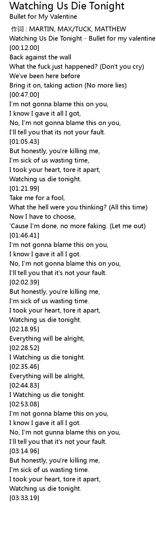 | [00:06.00] | Watching Us Die Tonight Bullet for my valentine |