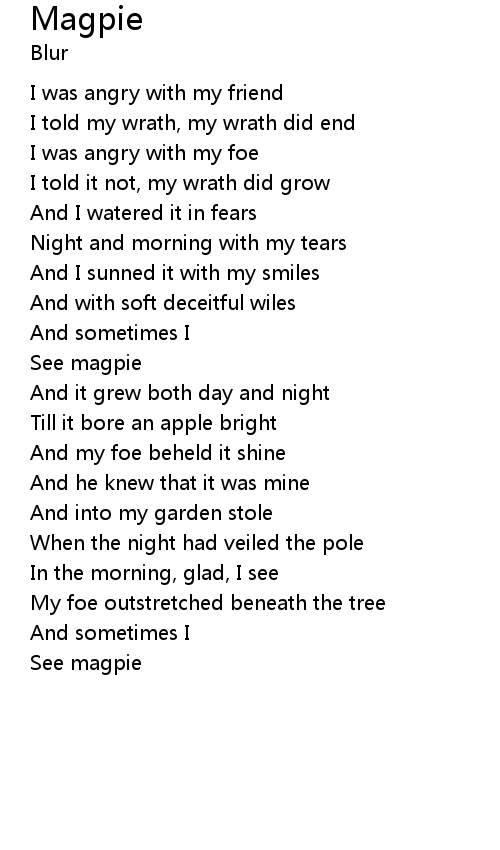 I told my wrath, my wrath did end |