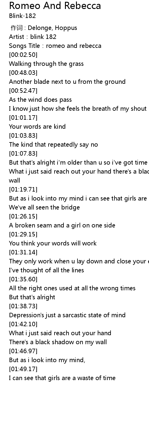 | [00:01.07] | Songs Title: romeo and rebecca |
