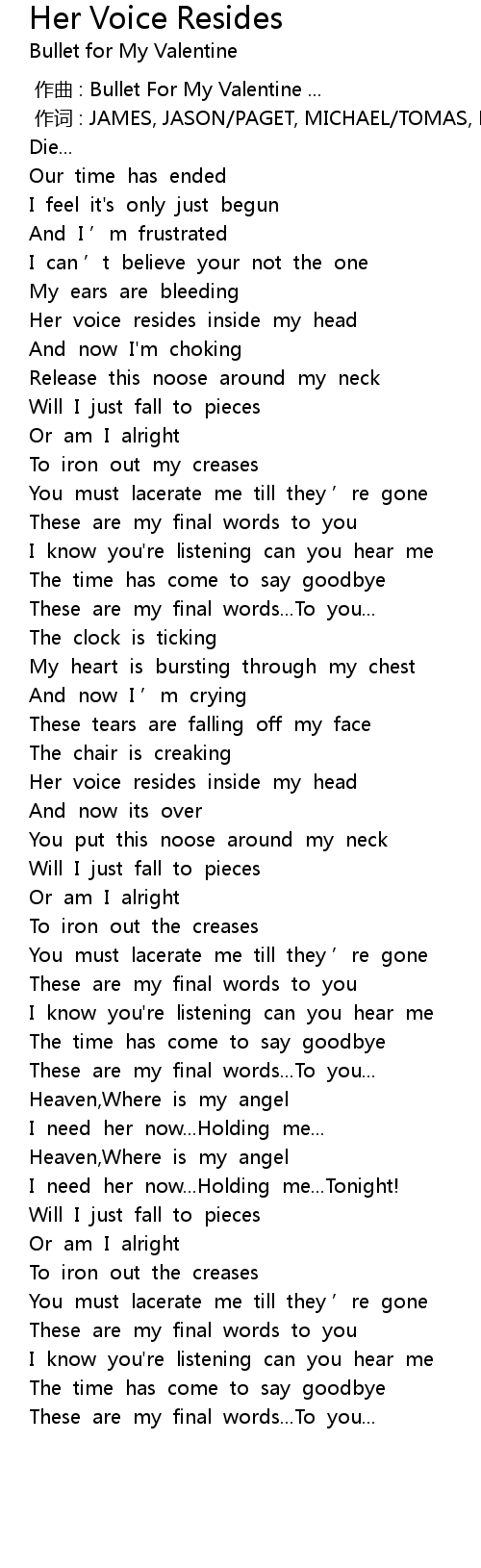 | Song | Her Voice Resides |