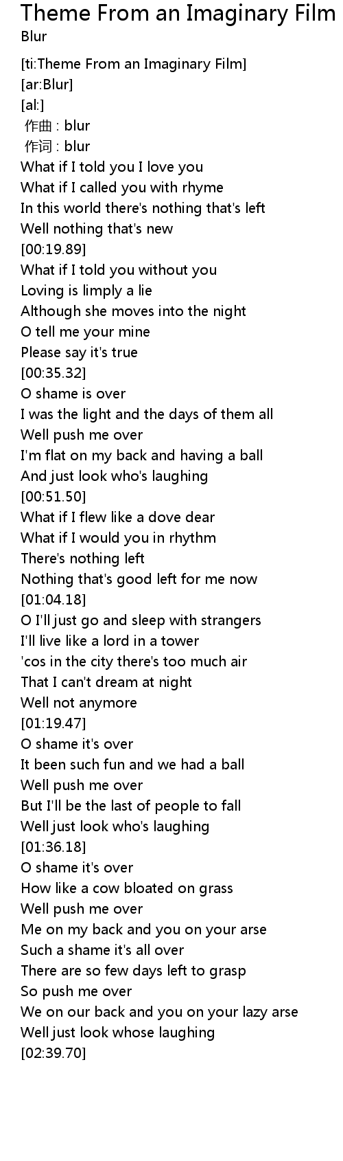 | [01:06.01] | O I'll just go and sleep with strangers |