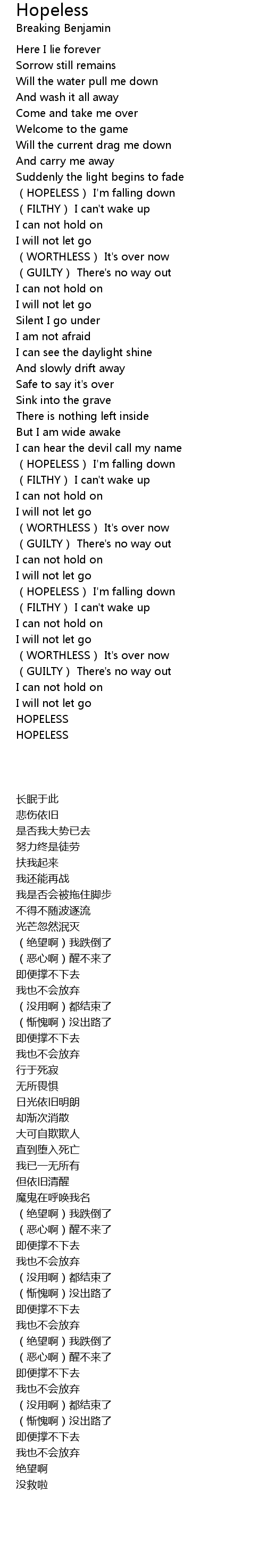 | [00:46.61] | (HOPELESS) I'm falling down |