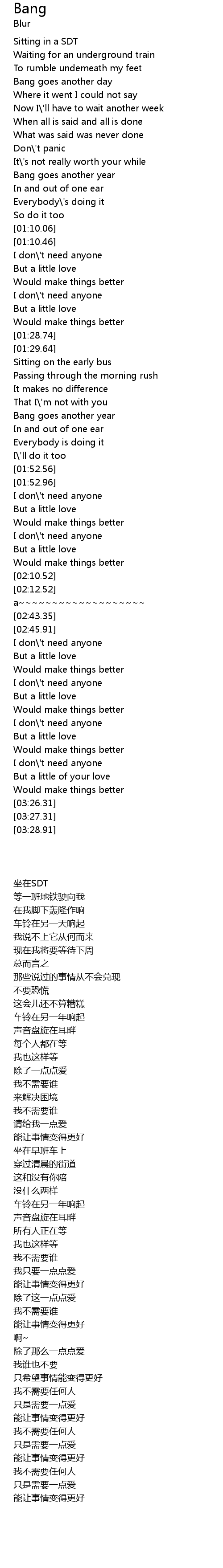 | [01:35.52] | Sitting on the early bus |
