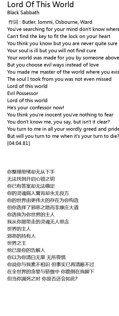 | [00:00.00] | 作词 : Butler, Iommi, Osbourne, Ward |