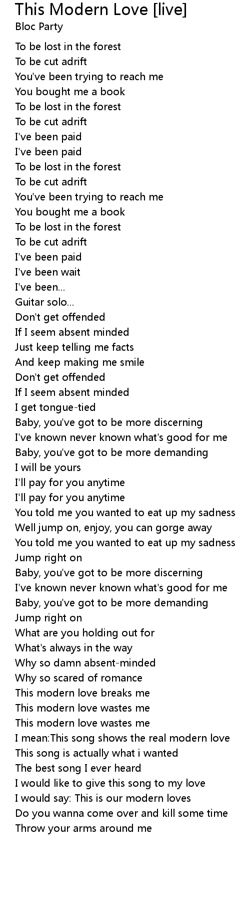This modern love wastes me |