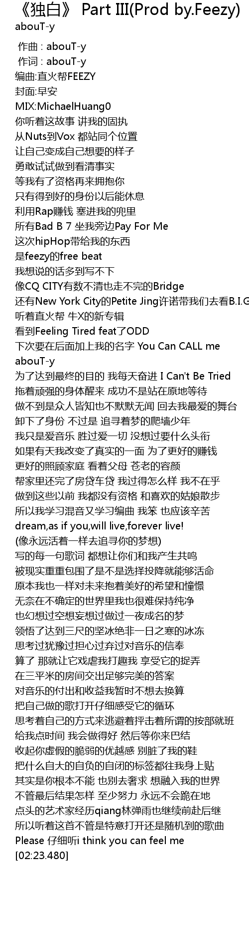 | [02:20.981] | Please 仔细听i think you can feel me |