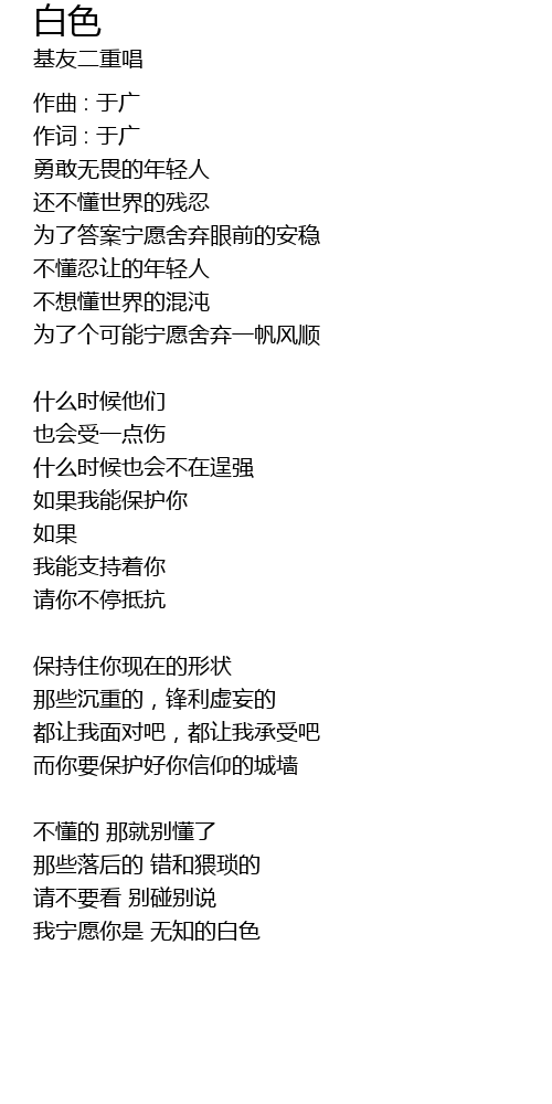 | wǒ nìng yuàn nǐ shì wú zhī de bái sè |
