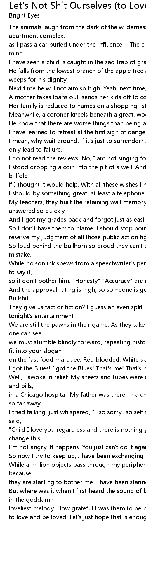 | Song | Let's Not Shit Ourselves (to Love and to Be Loved) |