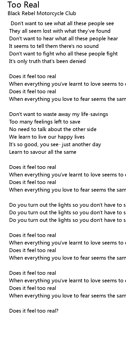 Too Real Lyrics