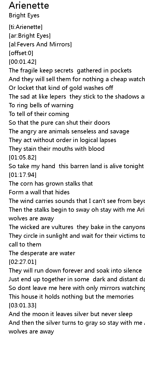 Then the stalks begin to sway oh stay with me Arienette until the wolves are away |