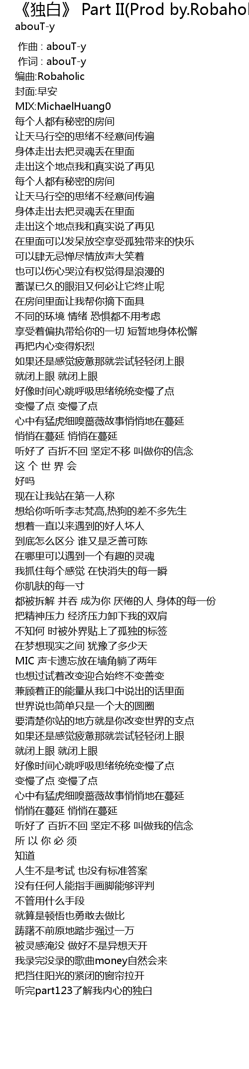 | [02:11.312] | 听完part123了解我内心的独白 |