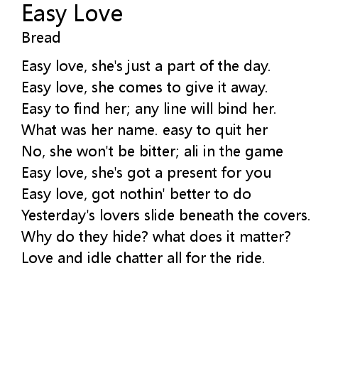 | Easy love, she's just a part of the day. | |