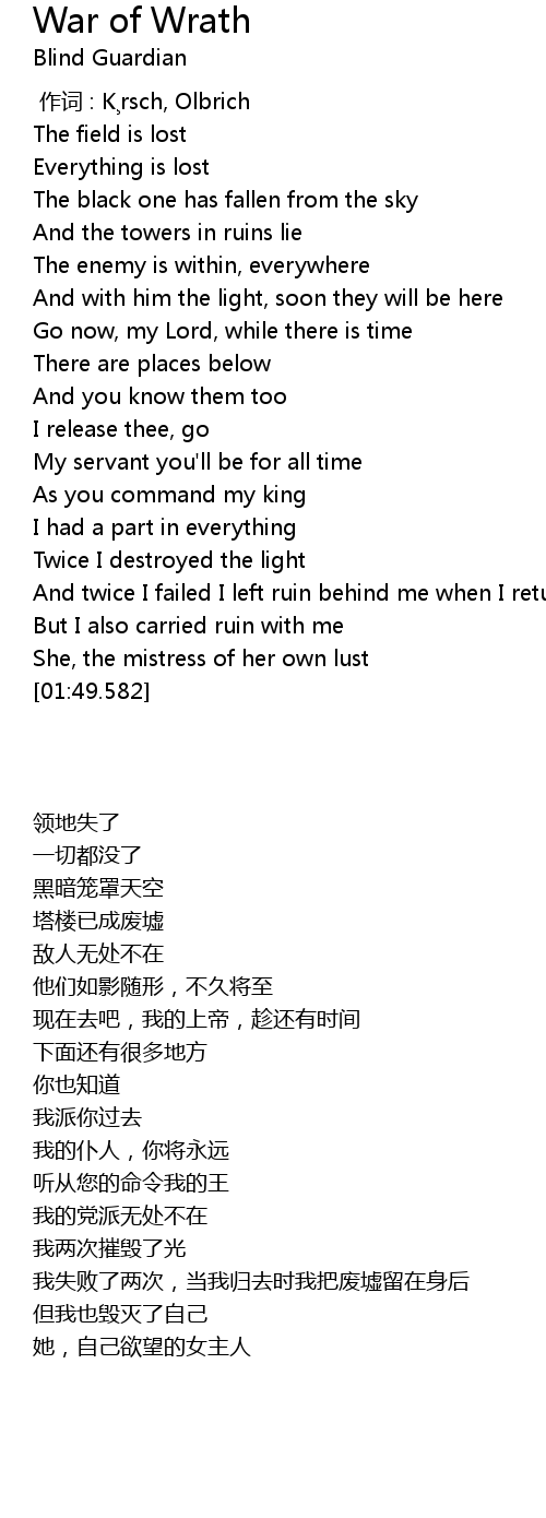 | [01:35.720] | And twice I failed I left ruin behind me when I returned |