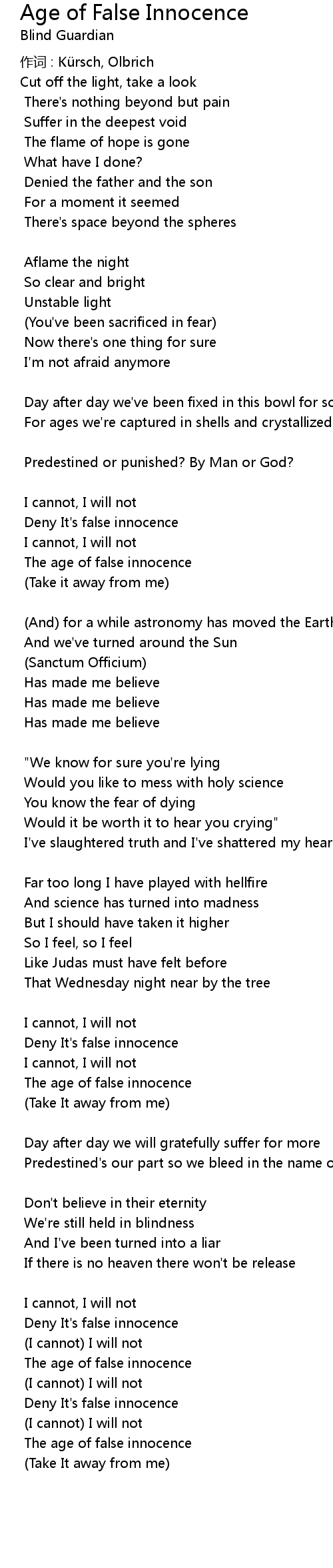 | Song | Age of False Innocence |