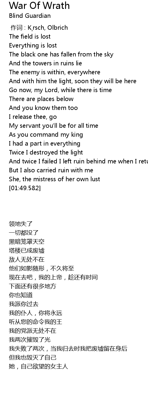 | [01:35.720] | And twice I failed I left ruin behind me when I returned |