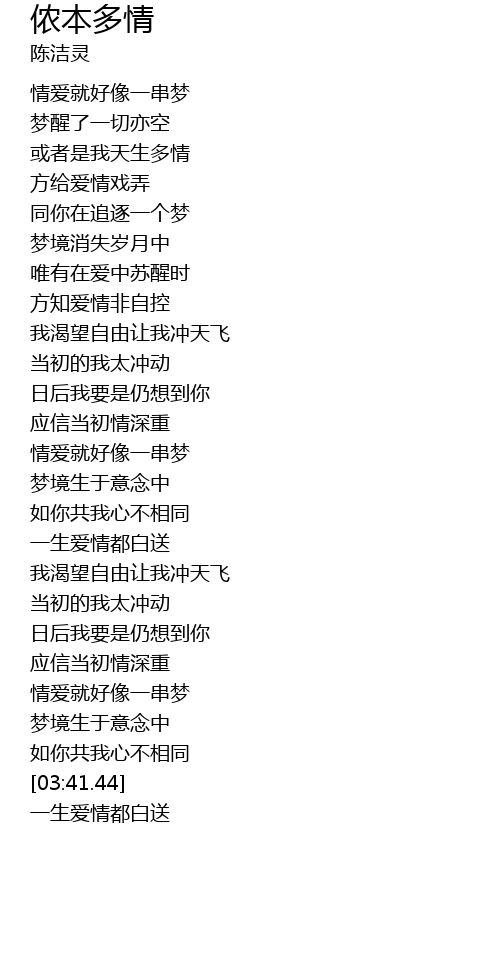 | [03:19.72] | 情爱就好像一串梦 |