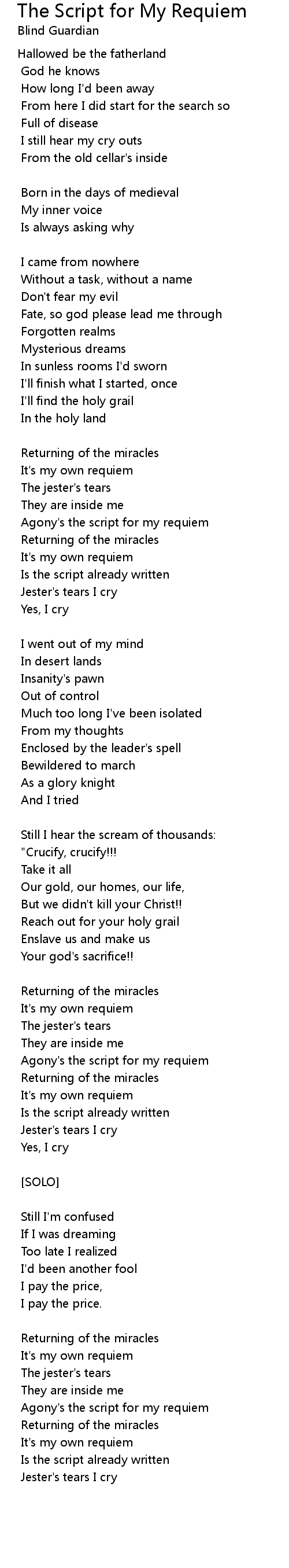 Jester's tears I cry |