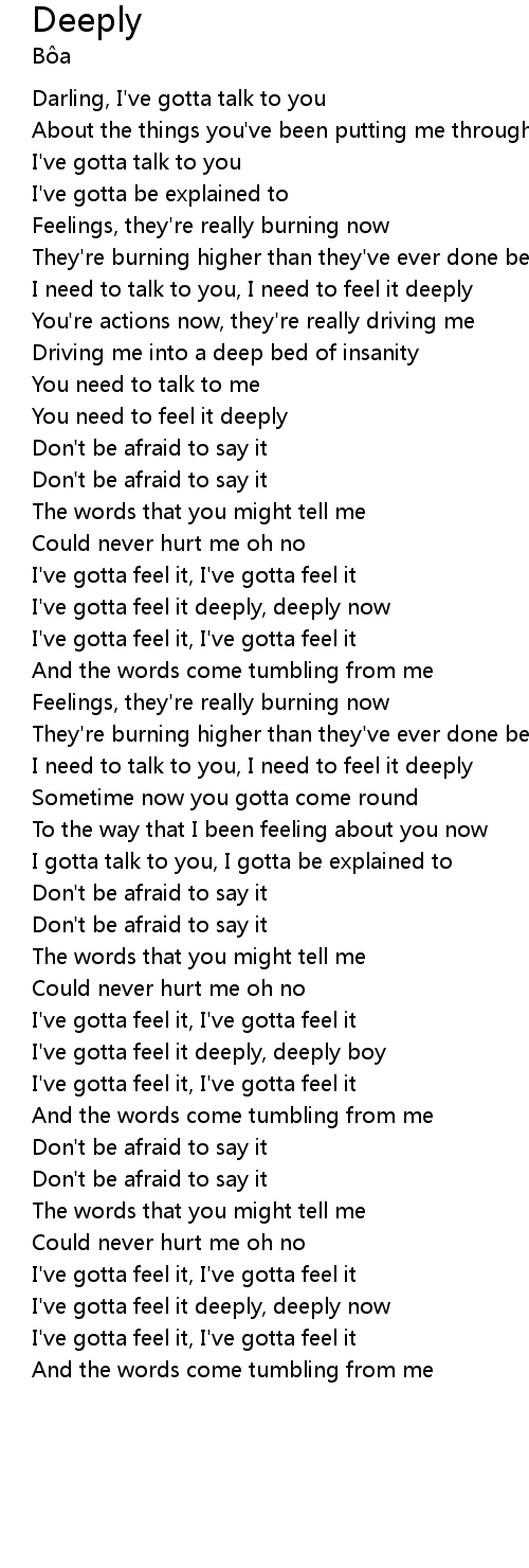 I've gotta feel it deeply, deeply boy